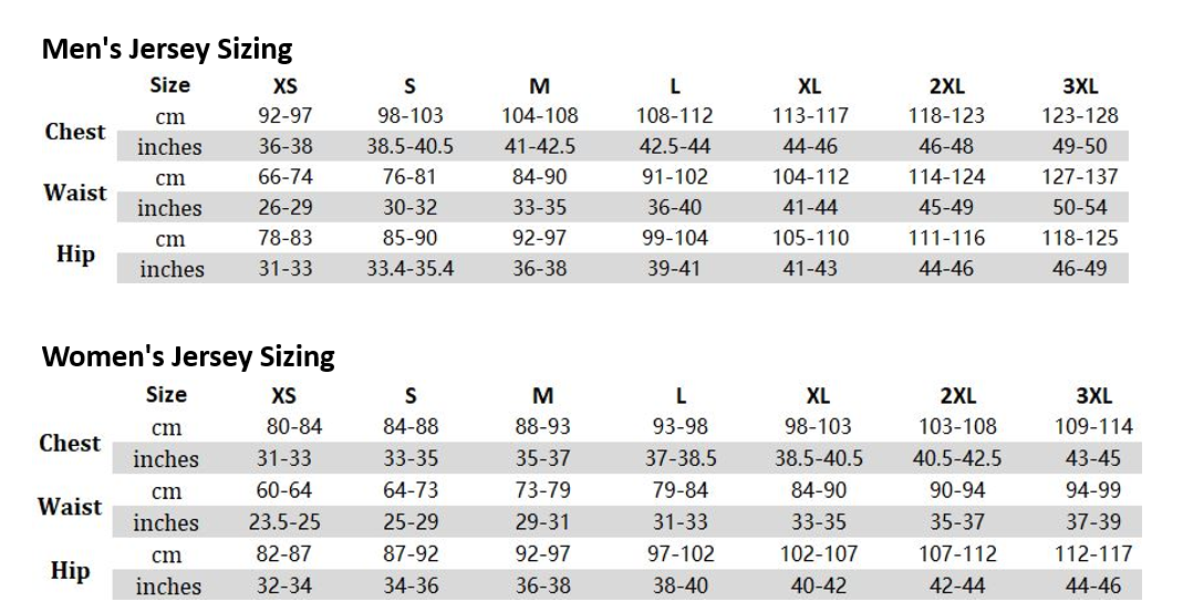 | Size | Men's -XXS, Men's -XS, Men's -SM, Men's -MD, Men's -LG, Men's-XL, Men's-2XL, Men's-3XL, Women's -XXS, Women's -XS, Women's -SM, Women's -MD, Women's -LG, Women's-XL, Women's-2XL, Women's-3XL |
